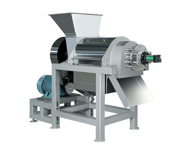 Let's take the spiral Juicer as an example. Its structural features are as follows: it is composed of front support, feed hopper, screw, filter screen, juice container, rear support, slag trough, etc. the left end of the spiral spindle is supported in the rolling bearing seat, the right end is supported in the handwheel bearing seat, and the motor drives the screw through a pair of V-belts. The main component of the equipment is the screw. The bottom diameter of the screw increases gradually along the direction of the slag outlet, while the screw pitch decreases gradually. When the material is pushed by the screw, due to the reduction of the volume of the screw cavity, the material is squeezed and juiced.